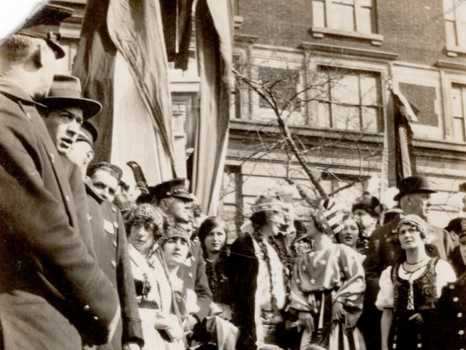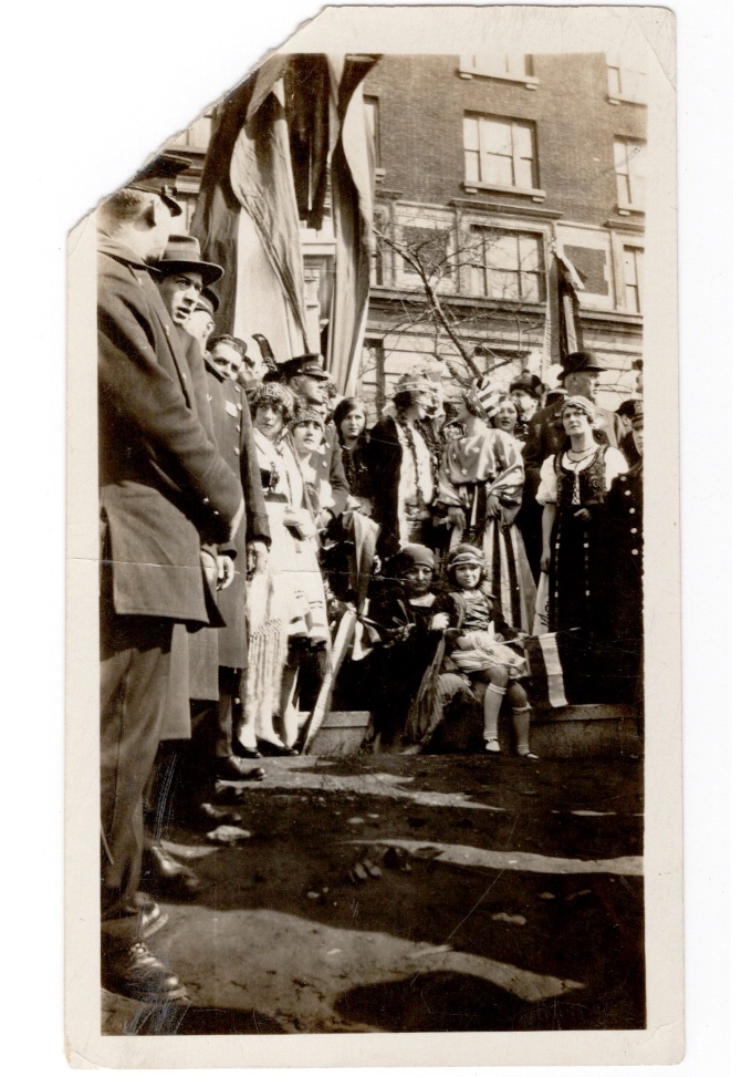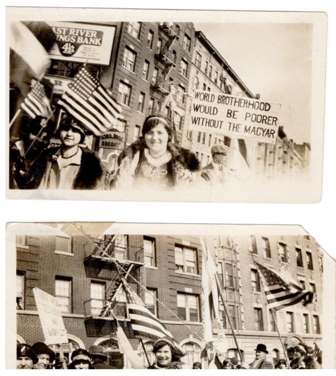 Lot of three photographs from a parade (likely NYC) and in the 1930s era. This section of the parade is in support of The Magyar (the Hungarian peoploe and language). Photos are in Poor / Fair condition, but do contain some great detail surrounding this moment in time. Each measure appx. 4.5" by 2.675"