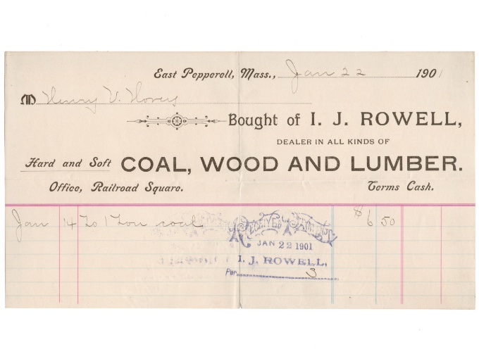 Receipt showing the purchase of 1 Ton of Coal, dated January 22, 1901.