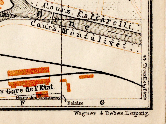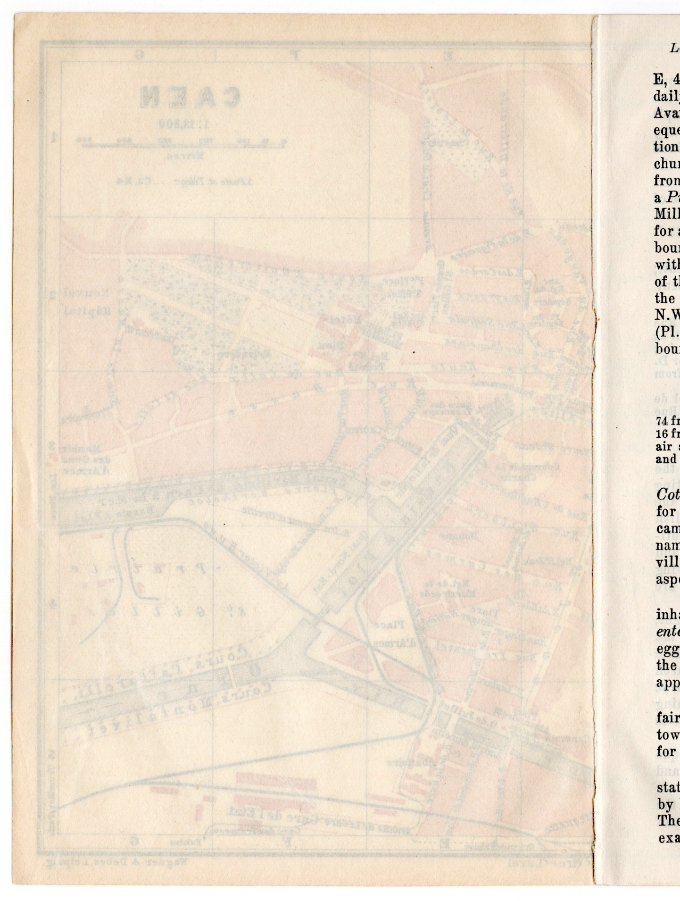 This is an original 1923 map, salvaged from a Baedeker's Travel guidebook. Carefully removed from the damaged book, this map is still connected to it's neighboring page on the back. This was a full spread map (when in the book) so it has a full vertical crease across the center. Measures appx. 8 1/4" wide by 6 1/4" tall.