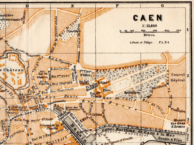 Caen is a city and commune 15 km (9.3 mi) inland from the northwestern coast of France.