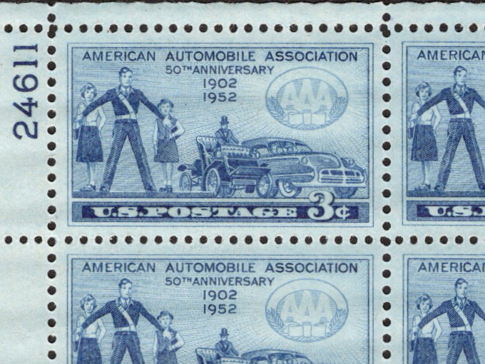 School girls and safety patrolman design, featuring autos from 1902 and 1952. Scott Catalog no. 1007. Condition Good, with no dammage, original glue, never mailed.