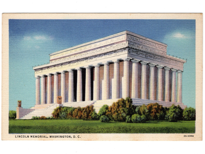 Hand-colored, white-border style linen post card. Never mailed, condition is Very Good with no bends, no folds, no writing, no stains, very minor soiling.