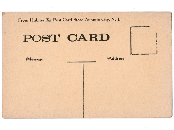Unmailed 1920s postcard, room for message on front & more message and address on the back. No writing, no folds, no stains, no pin-holes.